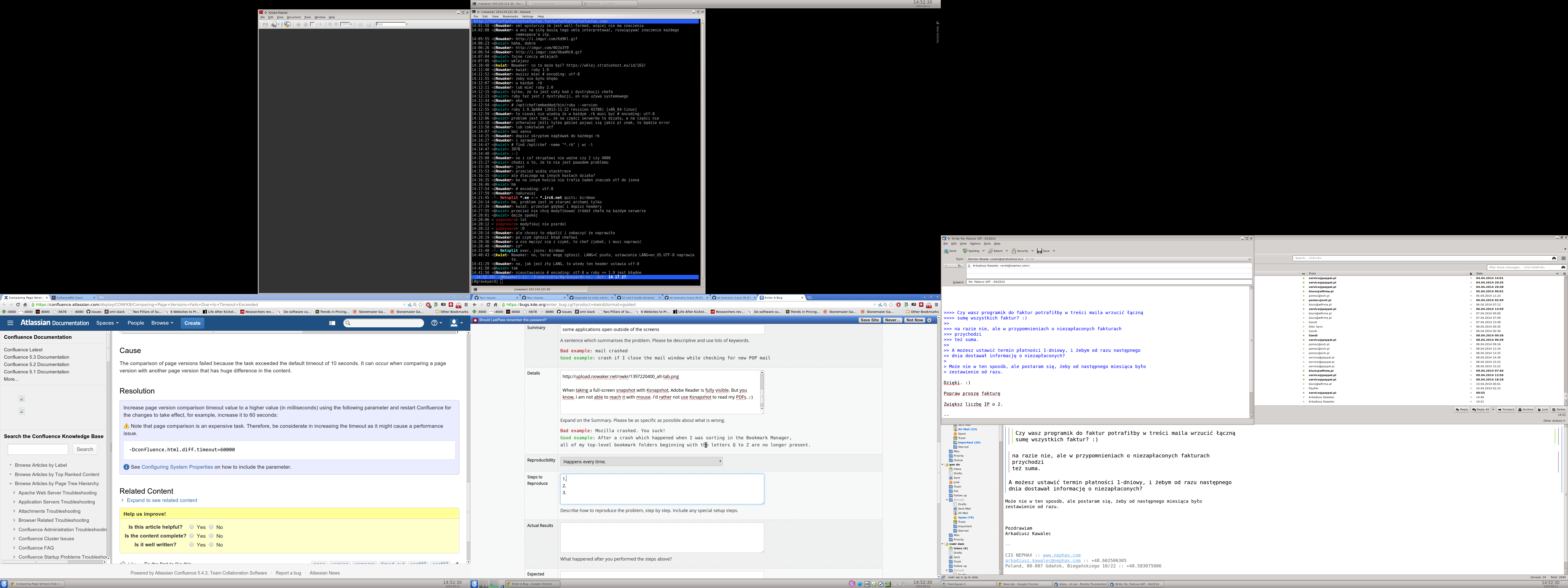 I have 4 screens. The setup is: http://upload.nowaker.net/nwkr/1397220340_xrandr-layout.png Some of applications open outside of the screens making them totally inaccessible. They appear in alt-tab menu but it's not possible to reach them. http://upload.nowaker.net/nwkr/1397220400_alt-tab.png When taking a full-screen snapshot with Ksnapshot, Adobe Reader is fully visible. But you know, I am not able to reach it with mouse. I'd rather not use Ksnapshot to read my PDFs. ;-) http://upload.nowaker.net/nwkr/1397220762_fullscren.png I don't know if it's kwin or not. But description of the xrandr component ("Bugs related to XRandR. General multiscreen issues should be put into this component.") says I should report it here. All the affected apps: - Adobe Reader - opens outside every time, not usable - gns3 - opens some popup windows outside, hard to use (https://github.com/GNS3/gns3-gui/issues/1) - Skype - opens some popup windows outside, e.g. confirm to leave a chat, rendering it impossible to leave. ;) Using the latest Arch Linux, KDE 4.14.4, xrandr 1.4.2, mesa 10.1.0, libdrm 2.4.52, Xorg 1.15. Radeon 7870 with open source driver, with Glamor mode. Thanks. Reproducible: Always
