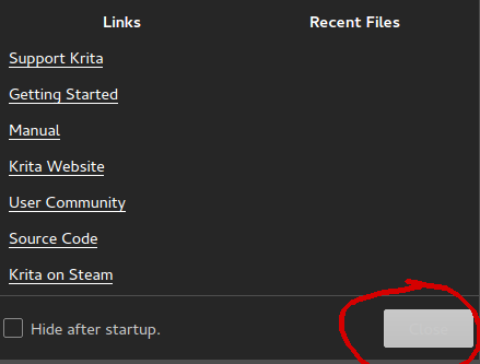 On the splash screen, the Close Button has a light grey background and white color. Its getting not readable from that. Im using Krita on Ubuntu Gnome, so it's GTK3. Reproducible: Always Steps to Reproduce: 1.Open krita with GNOME GTK 3. Actual Results: The Close-Button is not readable. Expected Results: The close-Button should have a dark-grey button with white text, so it gets readable.