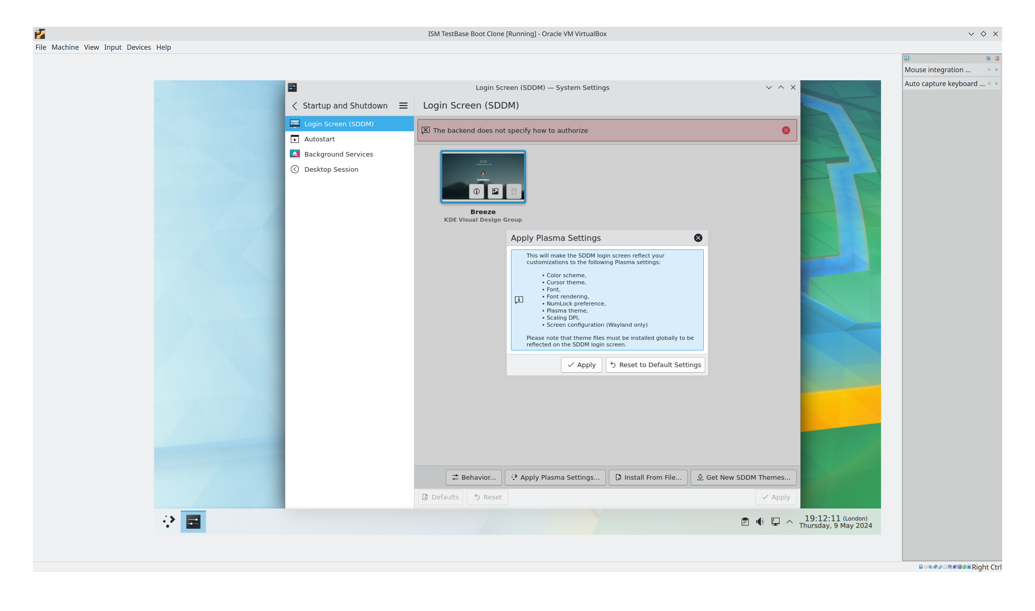 SUMMARY Hi everyone, I am facing a problem with plasma 5.27.7. I am making actually my own distro. I almost finished my package manager. I can boot a full plasma desktop environment, with Openrc. I am facing a problem I can't solve: If I generate a new user by CLI in a terminal, with the useradd command, the new user is not visible in the plasma settings GUI. But if I generate a new user by the plasma settings GUI, the new user is visible in that graphical user list. I have another problem as well. It's related when I try to change the sddm theme. If I try to apply to plasma settings, I have this error: "The backend does not specify how to authorize". If I change the resolution as well and I reboot, it come back to the default value, and not the one I setted. I did 2 screenshots to make you understand: https://zupimages.net/up/24/19/f7cp.png https://www.zupimages.net/up/24/19/oc7s.png STEPS TO REPRODUCE 1. Login with a user generated by useradd command (not by the graphical user settings) 2. Try to change the resolution, SDDM theme and see the user list OBSERVED RESULT Even I confirmed the resolution change, at the reboot come back to the default value was before, I can't see any user generated by CLI and I can't apply the settings for SDDM. EXPECTED RESULT I am able to see all users, and to change whatever I want in the settings SOFTWARE/OS VERSIONS Linux/KDE Plasma: Linux Kernel 6.5.1 / Plasma 5.27.7 (available in About System) KDE Plasma Version: 5.27.7 KDE Frameworks Version: 5.109.0 Qt Version: 5.15.10 ADDITIONAL INFORMATION If I login with a user generated by CLI or by the plasma GUI, I have the same result, I don't see any user and I can't change special settings like resolution or sddm theme. But normal settings like cursor themes can be changed